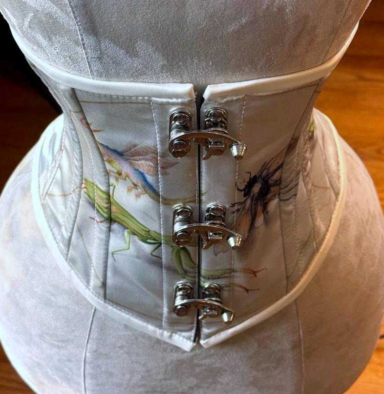 חתוך כסגנון קלאסי מתחת לחזה, הקורסט הזה מהדק בחוזקה במותן תוך השארת החזה חופשי — צורה שהיא גם רב-תכליתית וגם מרשימה. מבפנים, עצמות פלדה שומרות על הקו כמתוחכם כמו ארכיון של טבעוני, בעוד שההדפס מבטיח שכל פריט הוא ייחודי כמו היצורים שהוא נושא.