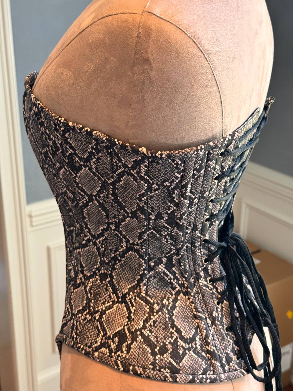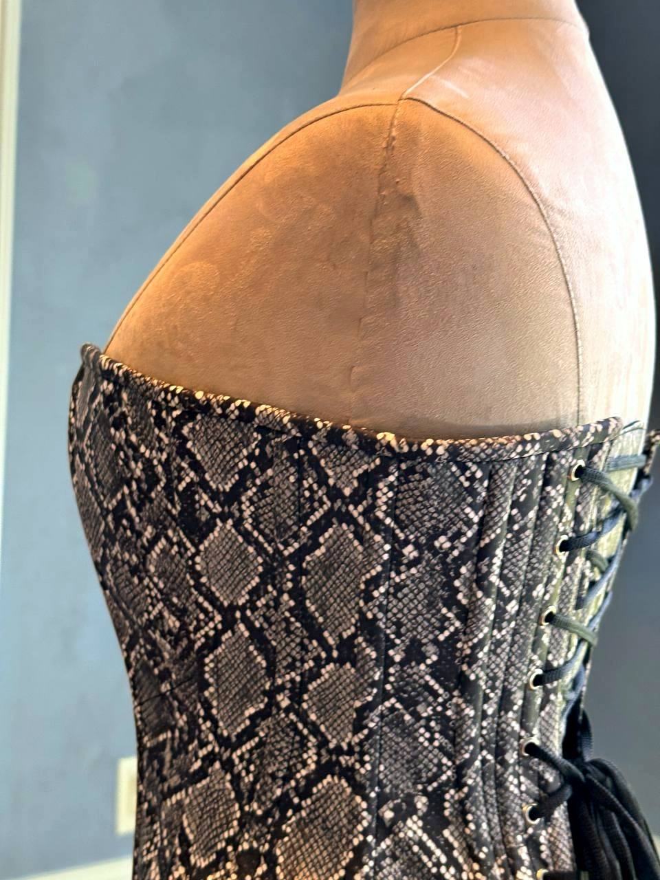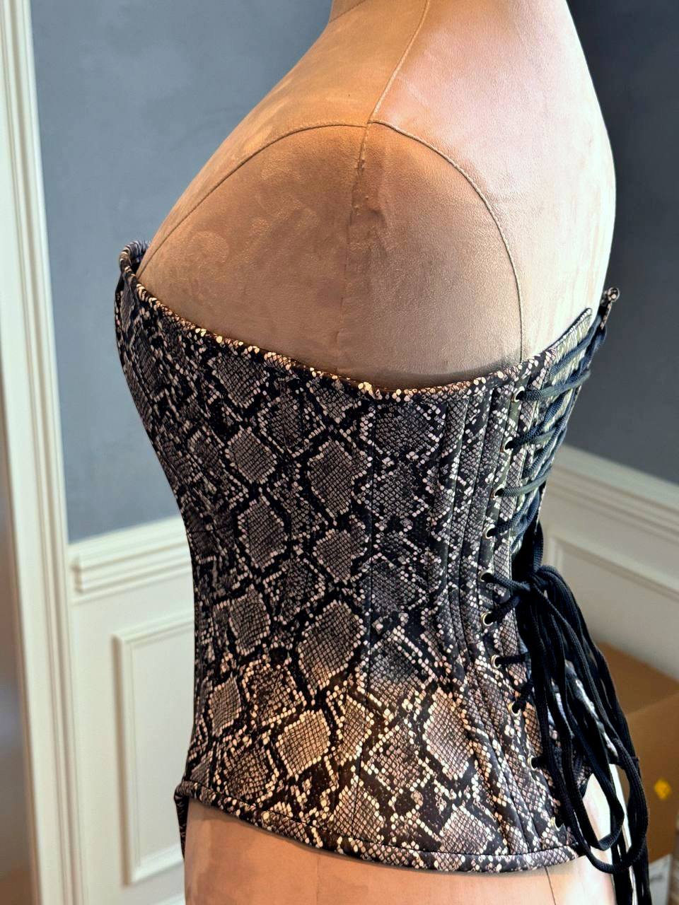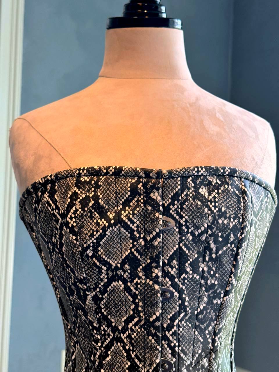 חלק, מסוכן והיפנוטי — נשיקת הנחש נוצרה לסוג של לילה בהלואין שבו הקסם הוא נשק. עשוי מבד המדמה את הברק והקשקשים של עור נחש, הוא נדבק בדיוק ובכוח, מפסל את הגוף כמו פיתוי לחוש.