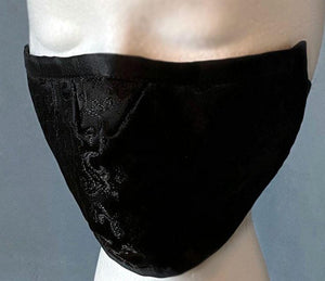 Black brocade face cover/cloths face mask, cotton inside. Made to order