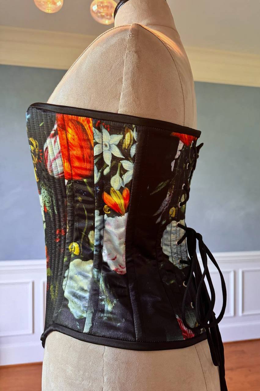 Dutch Masters Floral Overbust Corset – Steel Boned Satin Art Collection Corset Inspired by 17th-Century Paintings