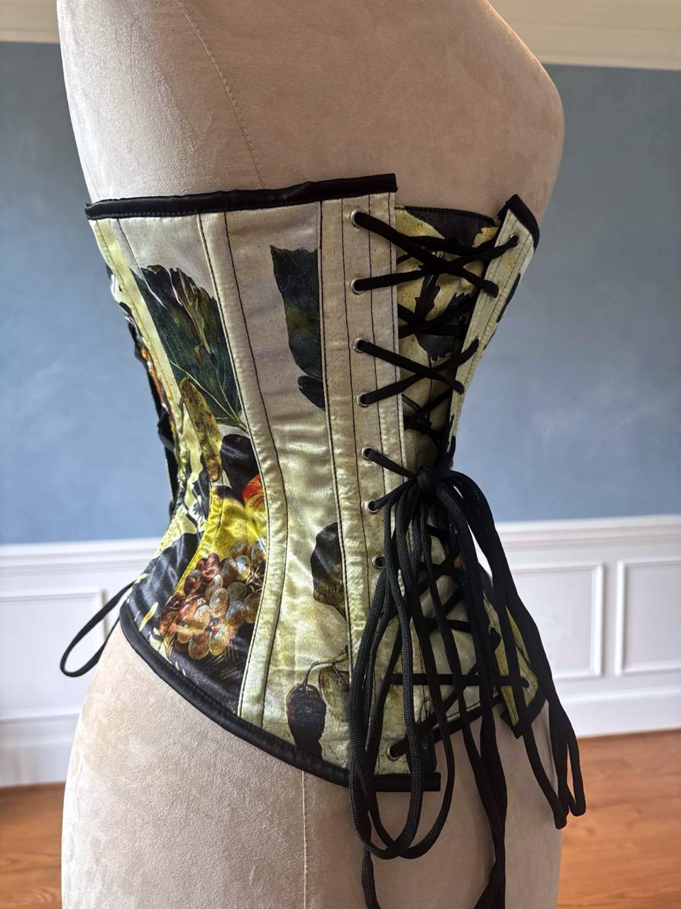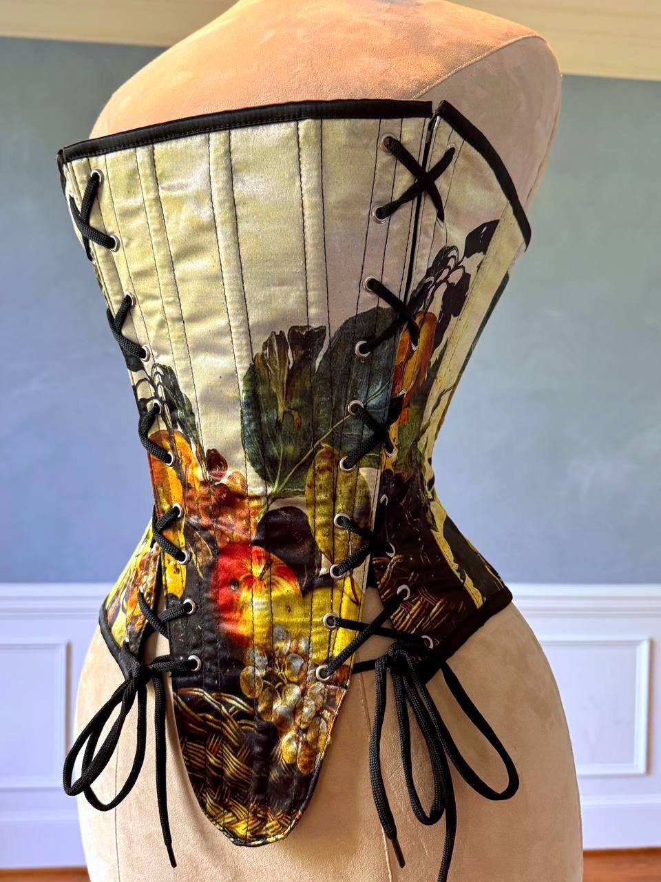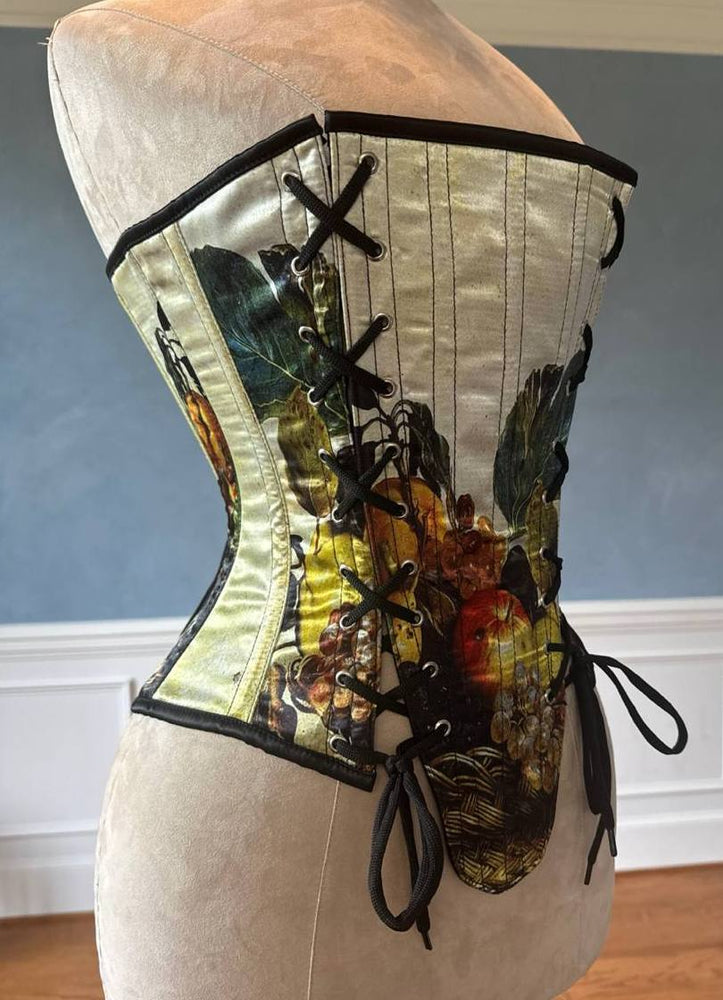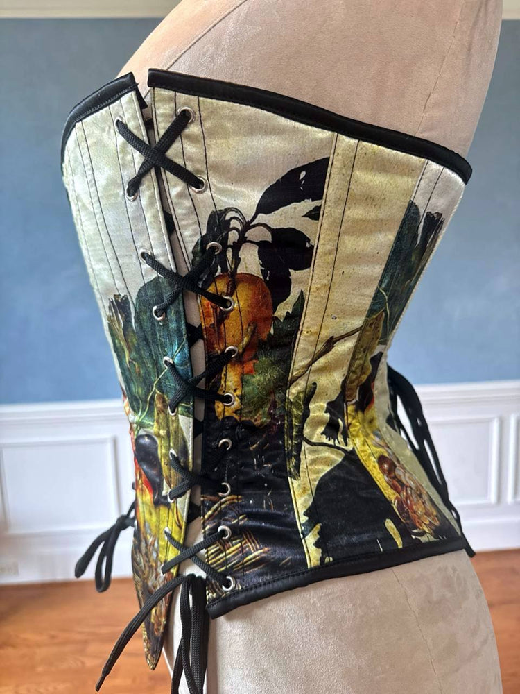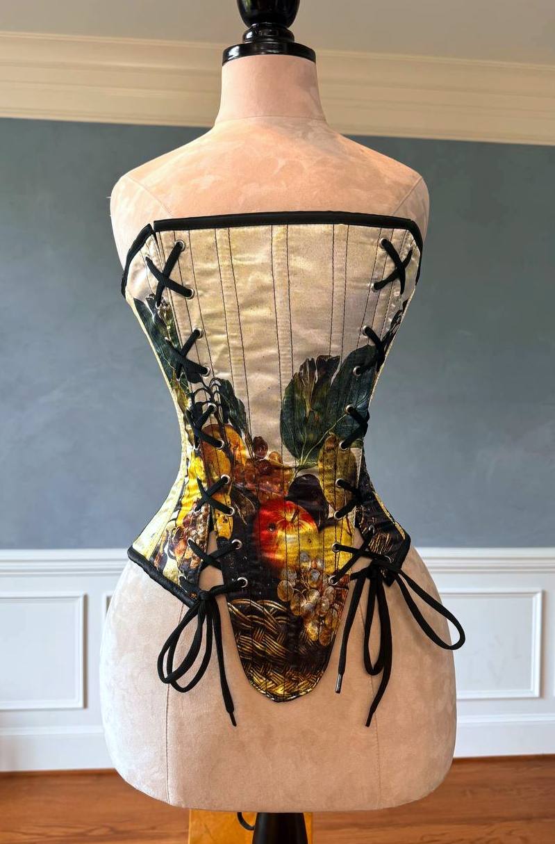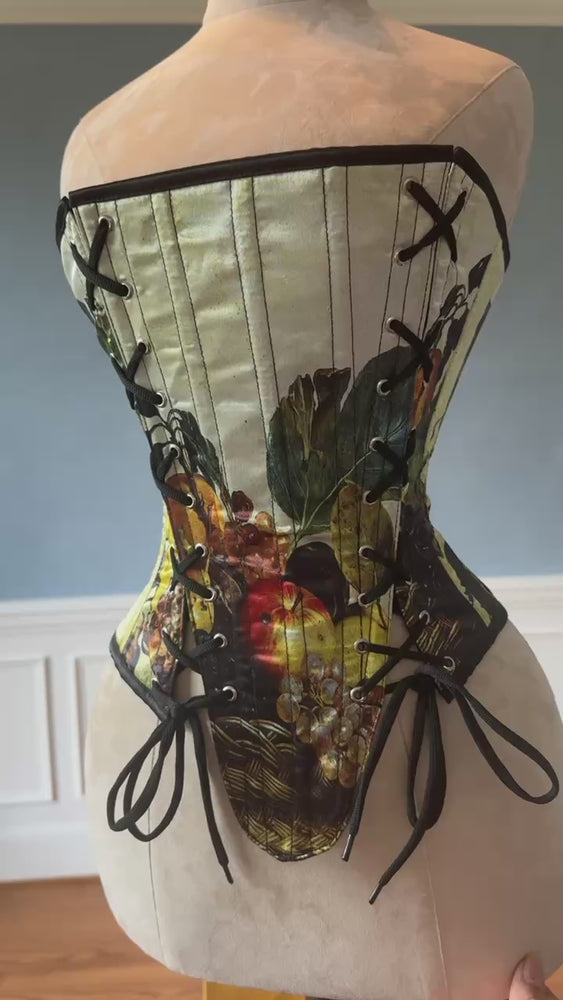 Caravaggio Basket of Fruit Overbust Corset – Satin Art Collection Corset with Dual Front Lacing
