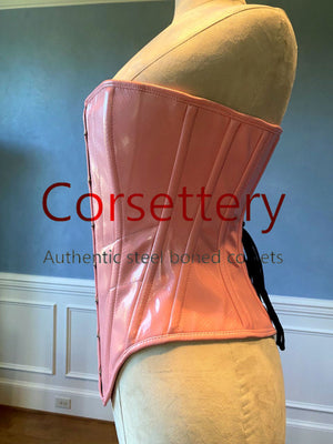 Pastel pink faux leather Edwardian pattern PVC corset. Steelbone custom corset, renaissance, gothic, steampunk, bespoke, victorian