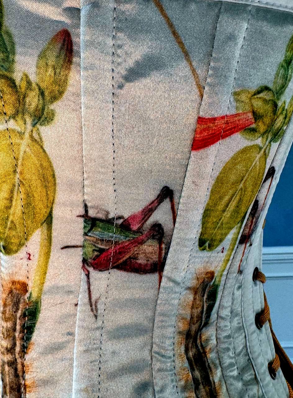Confeccionado em cetim luminoso com um impressão científica vintagecada espartilho carrega uma parte única da ilustração — nenhum é igual. Esta peça é totalmente estruturado com aço de alta qualidade, construído para estrutura, postura e uma silhueta marcante. Um decote coração e uma borda inferior pontiaguda evocam elegância clássica com um toque de dark academia.